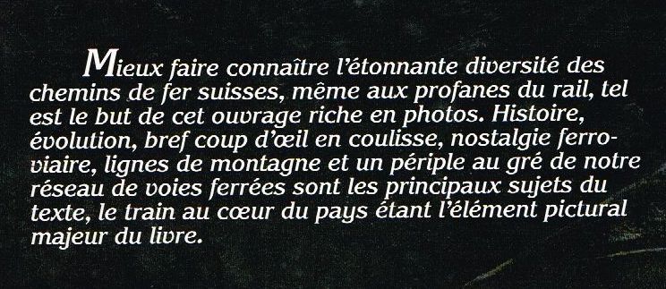 | Titre | Auteur | Editeur | Année | Format & pages | Description | Prix CHF | Référence | |