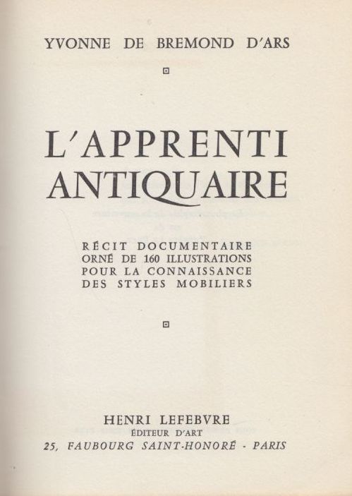 Apprenti (l') antiquaire | de Brémond d'Ars Yvonne | Hachette | 1964 | Broché - 15x21 - 252 pp | Nombreuses illustrations - Verso | 3 | LD-2071 |