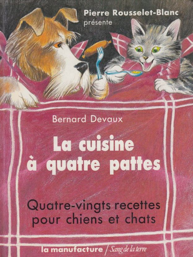 Cuisine (la) à quatre pattes - 80 recettes pour chiens et chats | Devaux Bernard | La Manufacture | 1989 | Relié - 16.5x21.5 - 112 pp | Illustrations - Verso | 3 | LD-2877 |