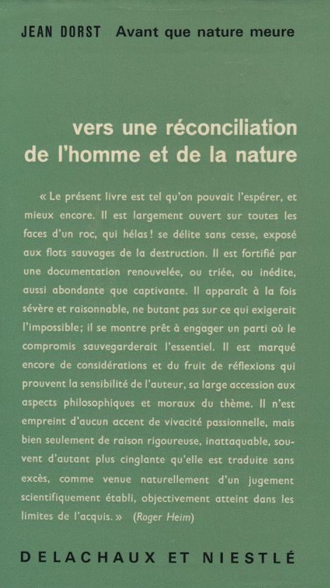 Avant que nature meure | Dorst Jean | Delachaux & Niestlé - Neuchâtel | 1970 | Relié - 15.5x21.5 - 544 pp | Nombreuses illustrations - Verso | 3 | LD-2918 |