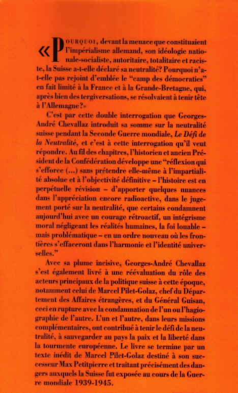 Le défi de la neutralité - Diplomatie et défense de la Suise 1939-1945 | Chevallaz Georges-André | L'Aire - Vevey | 1995 | Broché - 14.5x22.5 - 432 pp | Illustrations - Verso |